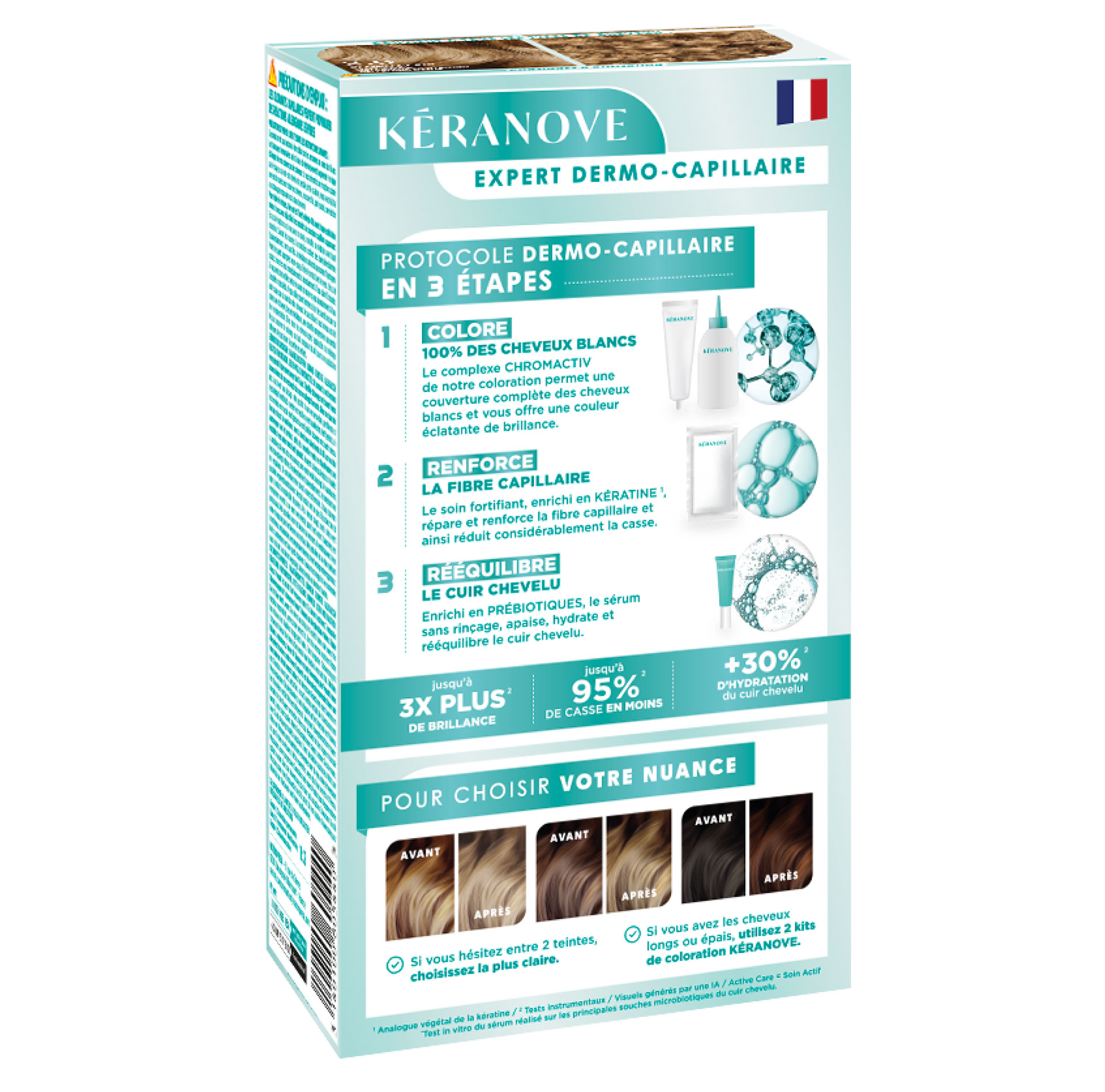 Avant d’appliquer votre coloration, il est nécessaire de faire un test d’allergie 48h avant chaque application. Vous devez suivre scrupuleusement toutes les étapes détaillées sur la notice présente dans le kit de coloration Kéranove pour obtenir un résultat parfait.